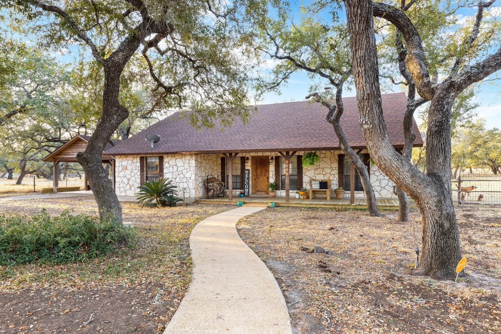 Stunning Oak Covered Estate 3 br 2 ba 2248 sqft custom built home. 1.44 acres just 30 min from downtown San Antonio. Open concept floor plan flowing from the living room to the kitchen and dining room. Towering ceilings can be found in the living room with a floor to ceiling stone fireplace